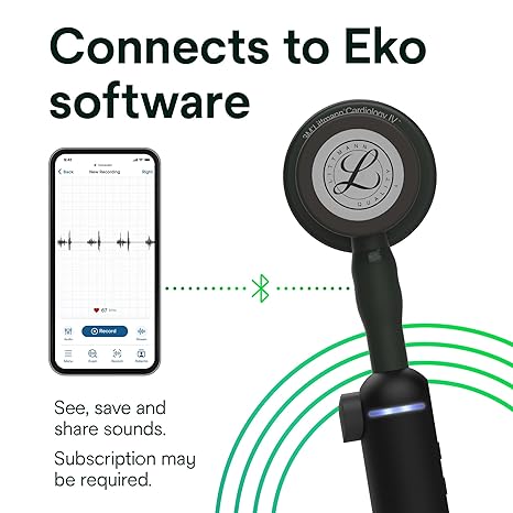 • مشاهده همزمان فونوکاردیوگرام: از طریق بلوتوث، گوشی به اپلیکیشن Eko در گوشی هوشمند یا تبلت شما متصل شده و شکل موج صداهای قلب را به صورت زنده نمایش می‌دهد.